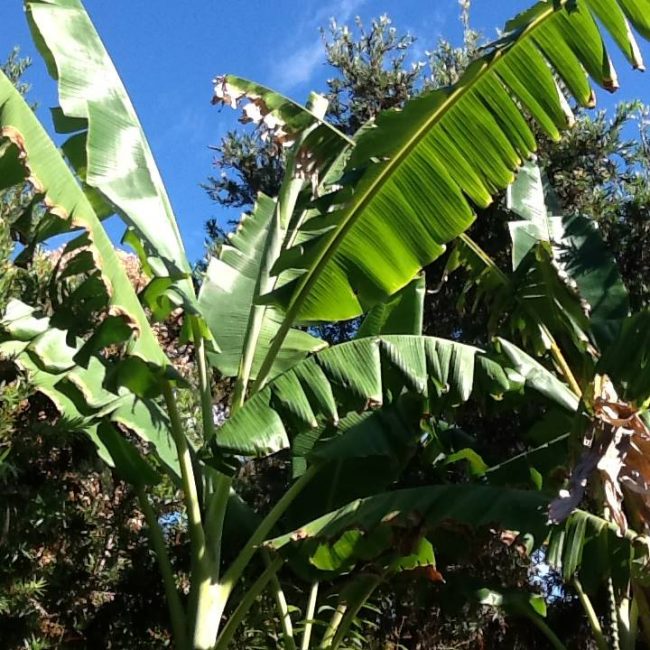 We get the odd bunch of bananas, a nice bonus … but the leaves make nice place mats (instead of paper serviettes), when we serve our meals at PLANT 4 BOWDEN!
