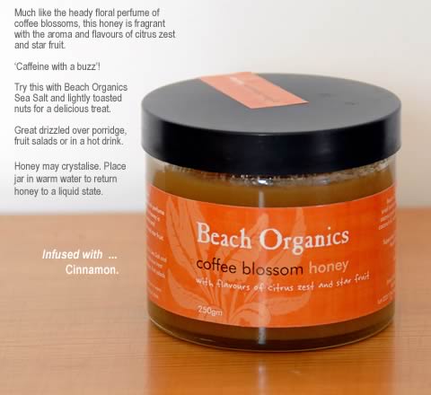 Much like the heady floral perfume of coffee blossoms, this honey is fragrant with the aroma and flavours of citrus zest and star fruit. ‘Caffeine with a buzz’! Infused with … Cinnamon.